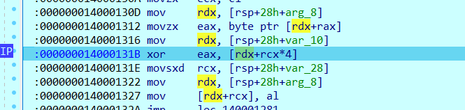 因此我们只需要在异或处下断点然后拿出寄存器中的值与密文异或就能够解决问题。