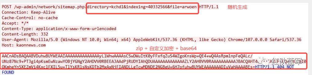 DLL对数据进行ZIP压缩+自定义加密+Base64编码处理后使用HTTPS加密上传到C&C服务器,见图2-1中的③。