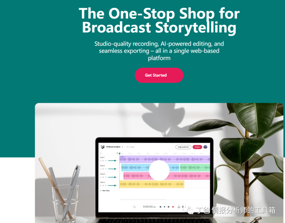 播客的一站式商店,演播室质量的录音,AI驱动的编辑,无缝导出,所有这些都在一个基于web的平台。基于网络平台的优质音频和视频录制。多轨道编辑和音频增强与几个简单的点击。即时无损下载,无缝地让你的演出在路上。