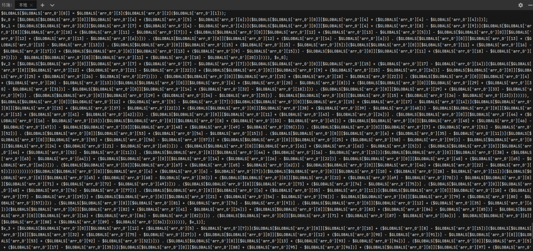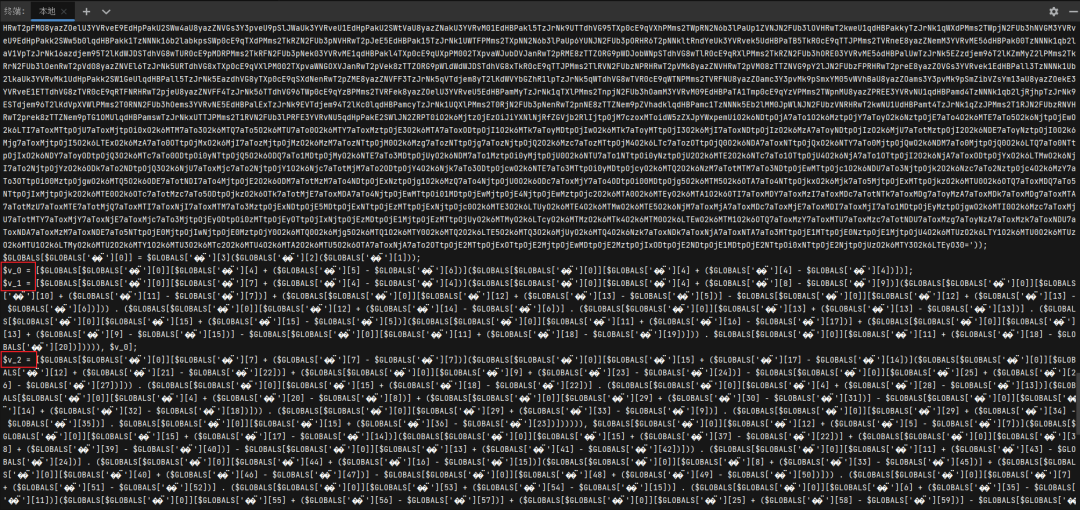可以看到原本的不可见变量名已经被重命名成了“v_“格式的变量。同时可以观察到“GLOBALS“变量的键名也是乱码字符,借鉴变量名重命名的思路对所有”GLOBALS“数组的键名进行重命名: