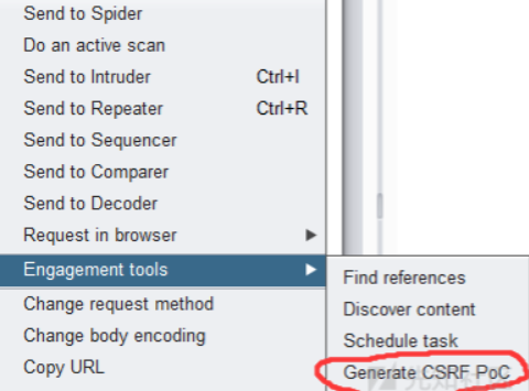 ...这里可以直接选择Burp Suite的Generate CSRF PoC生成