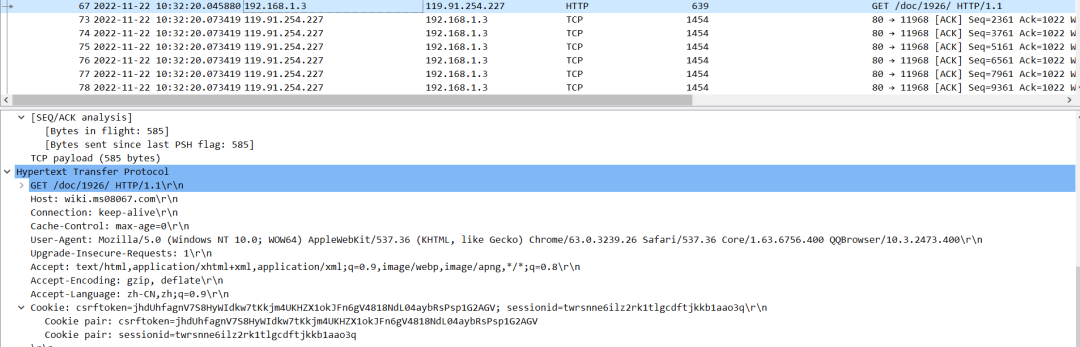 使用WireShark抓取访问wiki.ms08067.com的数据包,并且分析:源IP、目的IP、源MAC、目的MAC、数据,目的MAC怎么来的,写在文档中提交。