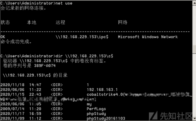 获取用户账号密码。在内网中,默认就会开启IPC$共享文件服务,默认会将C盘共享出来,也就是说,我们可以通过IPC获取目标C盘的权限。