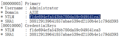 2、这里虽然没有获取到明文密码,但是获取了域管理员用户的NTLM。