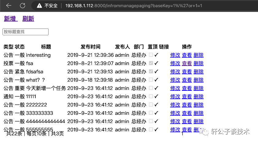 输入1%'or+1=1,显示22条,我记得模糊查询%%会自动省略吧
