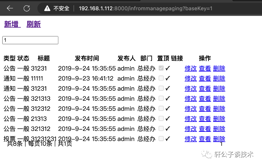 uri映射路径是informlistpaging@RequestParam是通过web参数进行传递这里调用了setSomething,setSomething(baseKey, type, status, time, icon, model);跟进查看,只是进行判断不为空即可if(!StringUtils.isEmpty(baseKey)){model.addAttribute("baseKey", baseKey);}然后就是将数据存储在列表里List<Map<String, Object>> list=nm.sortMyNotice(userId, baseKey, type, status, time);