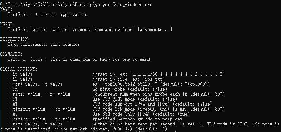 --Pn 在目标禁止PING时使用--rate 在网络不稳定时(互联网)可以适当减少(互联网下建议500~1500)--timeout 在网络不稳定时(互联网)可以适当增加--nexthop 用于在syn扫描模式下,找不到路由网卡情况时,指定下一跳网关地址(需要是本地网卡上绑定的网关地址)--PT ICMP不通时,使用常见端口的TCP探测主机是否存活--sV 用于判断端口的服务(主要是探测风险比较大的服务)--netLive 用于抽取网络内6个左右IP进行存活探测--httpx 用于探测http服务的title等信息--mop 用于目标组内存在防扫描防火墙的情况,单个IP扫描到开放的端口到达该值就停止对该IP扫描,避免浪费时间(建议值500)