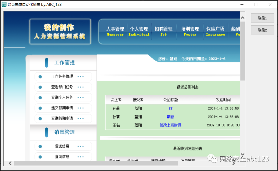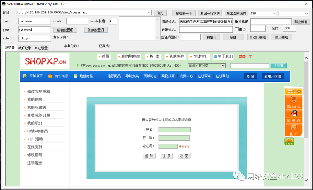 接下来要做的事情就简单了,用一个类似于for循环的指令,把上述过程自动化循环起来就可以了,然后还可以根据需要,对各种功能进行细化,以便适用于各种web环境。以下就是我曾经写的一个自动登录工具,图形界面及布局仅供大家参考。