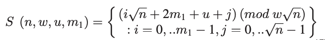 定义3:考虑到n不能是任何整数,它必须是完美平方。设1≤m1≤w,0≤u≤w√n−1,S(n,w,u,m1)表示如下: