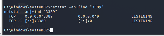 netstat -anwmic RDTOGGLE WHERE ServerName='%COMPUTERNAME%' call SetAllowTSConnections 1REG ADD HKLM\SYSTEM\CurrentControlSet\Control\Terminal" "Server /v fDenyTSConnections /t REG_DWORD /d 00000000 /fnetstat -an|find "3389"补充一点