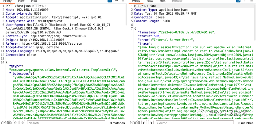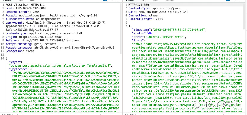 这是因为com.sun.org.apache.xalan.internal.xsltc.trax.TemplatesImpl需要赋值的一些属性为private 属性,服务端必须添加特性才回去从json中恢复private属性的数据。故此利用链利用条件局限性较大,看运气才能遇见。