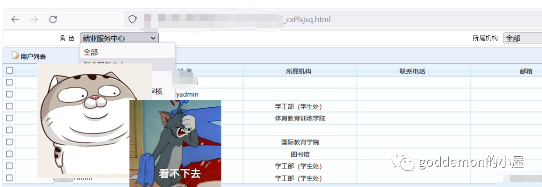危害最大的就是管理账户列表查看和查看学生身份证信息的。这里以管理员账户列表查看为例。