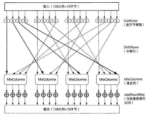 和DES—样,AES加密结果也是要经过多轮计算才能够得到的。
