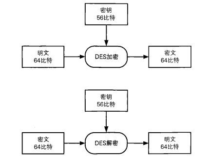 DES是以64比特的明文为一组来进行加密的。尽管从规格上来说,DES的密钥长度是64比特,一般来说,以分组为单位进行处理的密码算法称为分组密码(blockcipher),DES就是分组密码的一种。DES每次只能加密64比特的数据,如果要加密的明文比较长,就需要对DES加密进行迭代。由于DES每隔7比特会设置一个用于错误检查的比特位,因此,实质上其密钥长度为56比特。