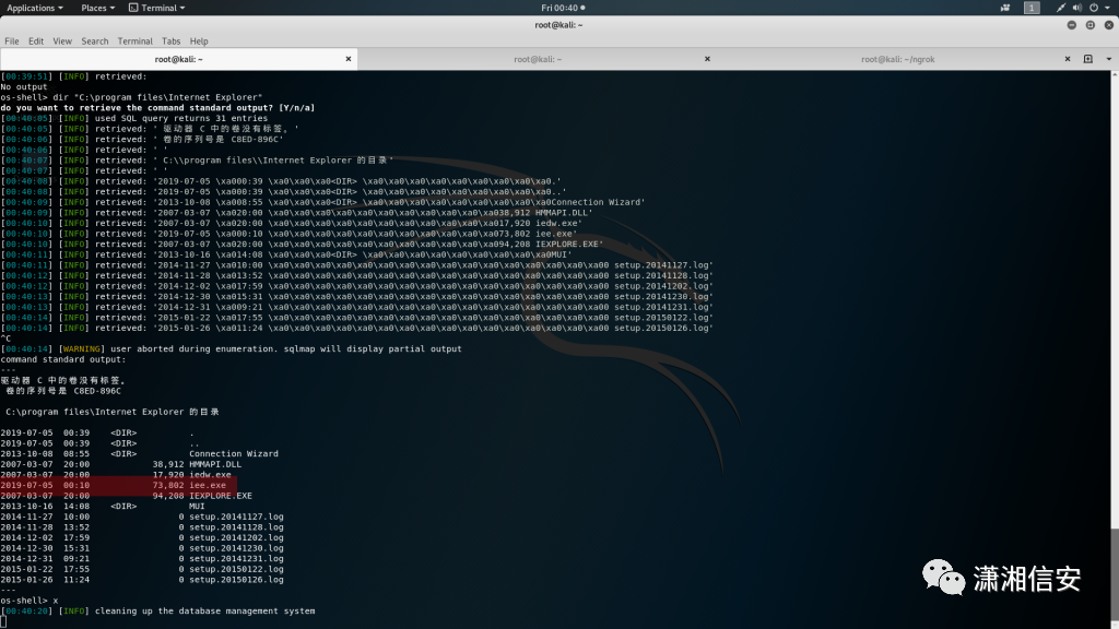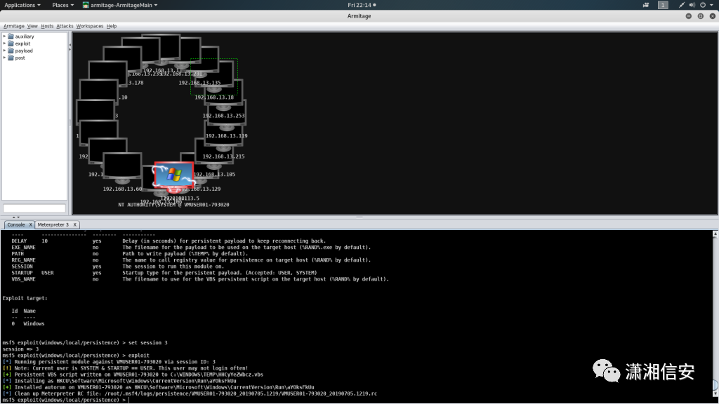 start iee.exe 运行木马,metasploit成功收到了SYSTEM权限的shell