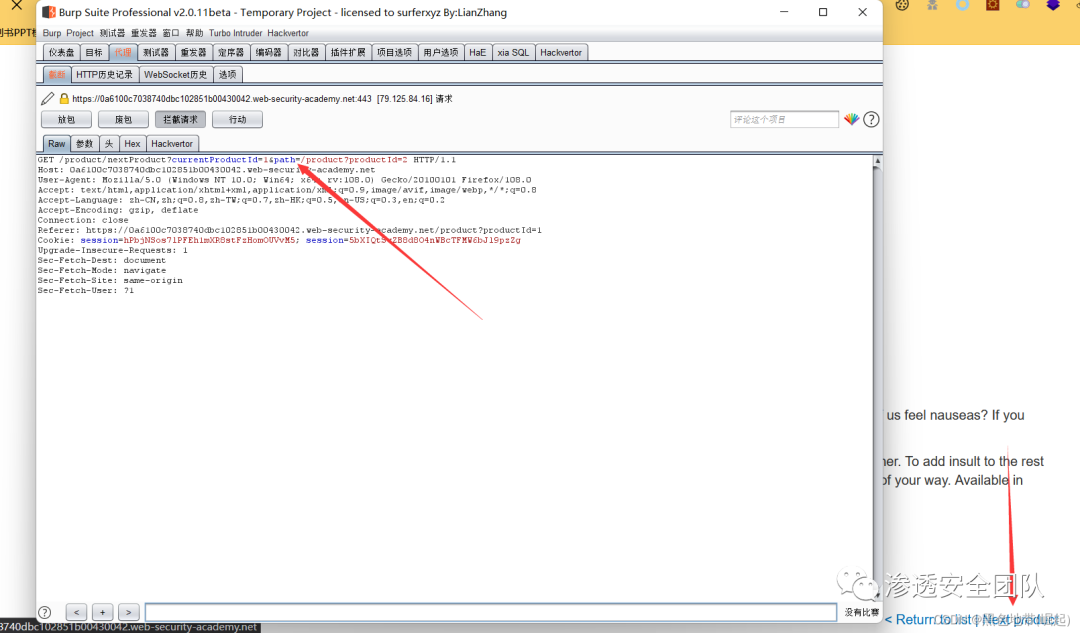 访问一个产品,在Burp Suite中拦截请求,并将其发送到Burp Repeater