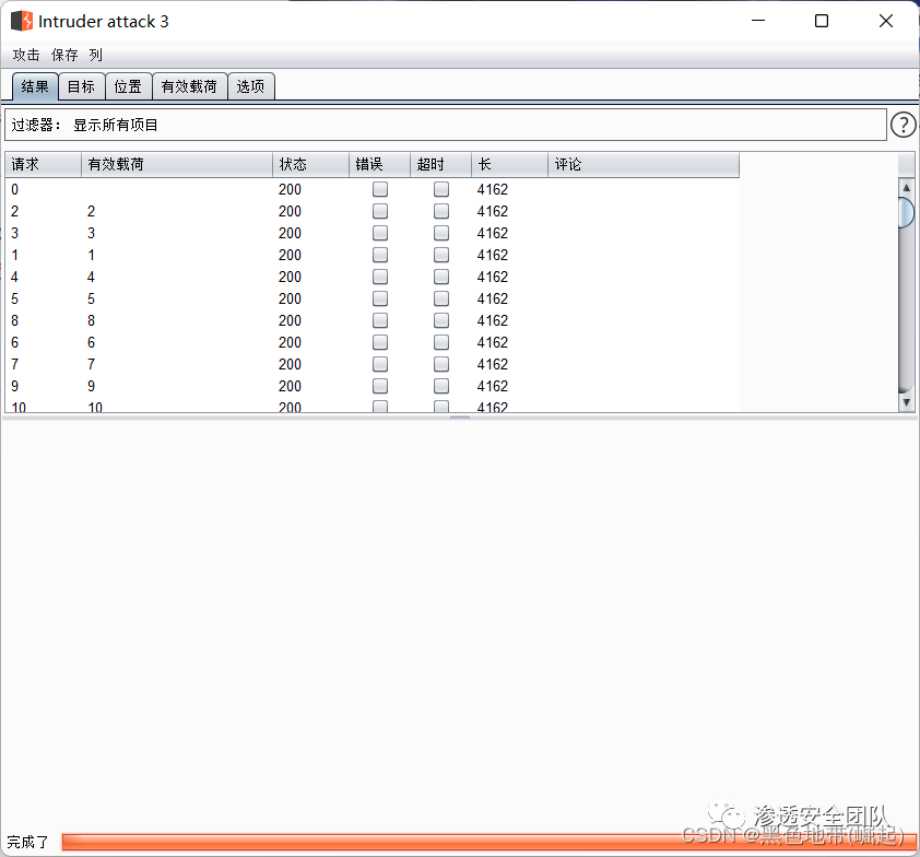 (如果始终没有结果,考虑是否是cookie过期,换一个cookie;或者重新复制一个BP客户端URL)