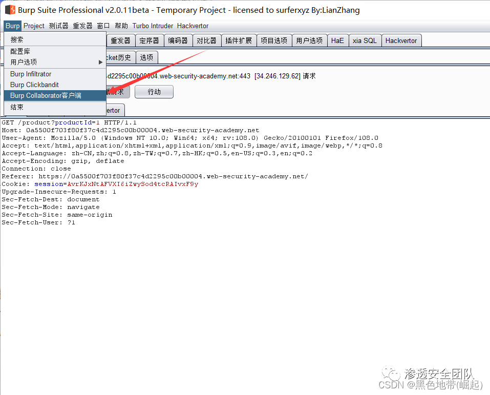 要解决实验:使用此功能向公共Burp Collaborator服务器发出HTTP请求。