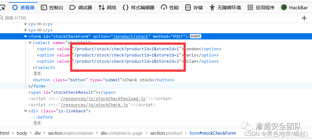 尝试篡改stockApi参数,观察到无法使服务器直接向其他主机发出请求