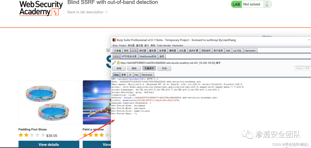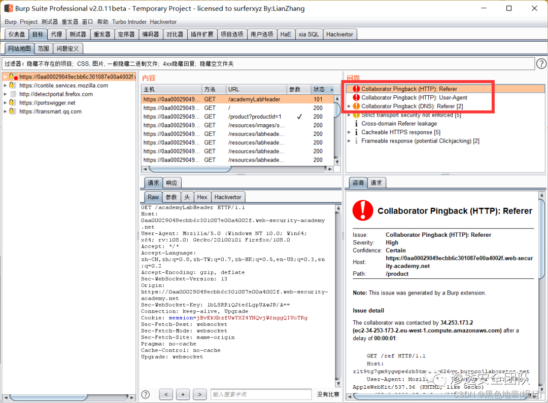 浏览网站,当加载产品页面时,它通过Referer头触发了与Burp Collaborator的HTTP交互