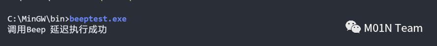 #include <Windows.h>#include <stdio.h>// 调用Beep 实现延迟执行int time_Beep(){// 设置延迟 300000毫秒 5分钟int wh_compter = 0;int wh_total = 300000;while(wh_compter < wh_total){Beep(2, 1); // 2hertz, 1ms 设置低频和短暂的间隔时间实现听不见蜂鸣声wh_compter++;}if(wh_compter > wh_total - 1)return 1;return 0;}int main(){if(time_Beep())printf("调用Beep 延迟执行成功 \n");elseprintf("调用Beep 延迟执行失败 \n!");return 0;}