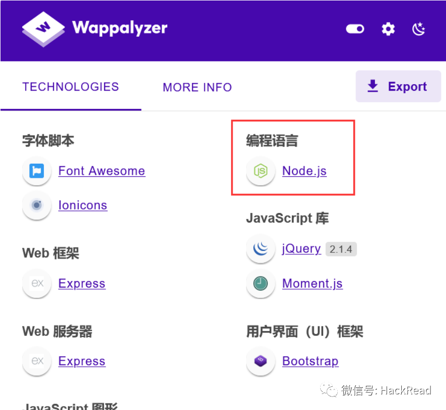 目录探测发现404界面也极像Node.js的404页面,后面重点关注js文件