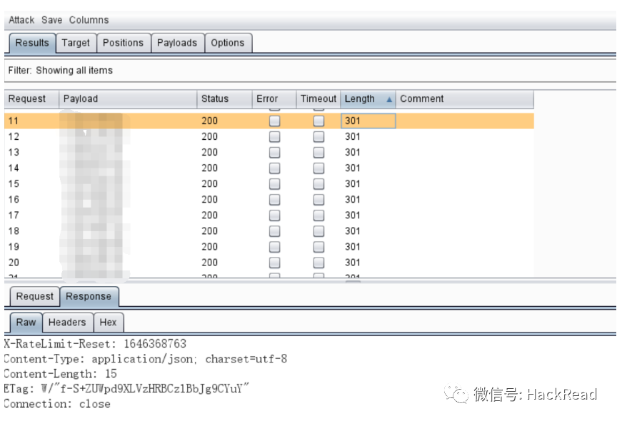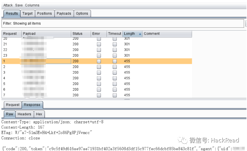 通过上述接口,可以通过用户的uid获取用户的用户名,将所有的用户名作为字典,放入burp爆破弱口令