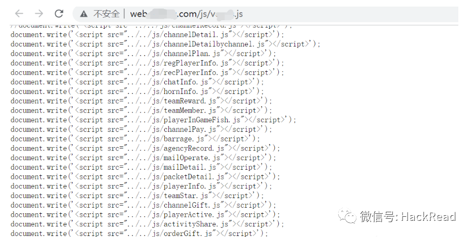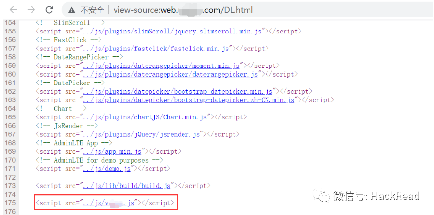 前面说了,重点关注js文件,查看页面源代码,发现一个有趣的js文件,为什么说这个文件有趣呢?因为这个js的文件名和产品名一致