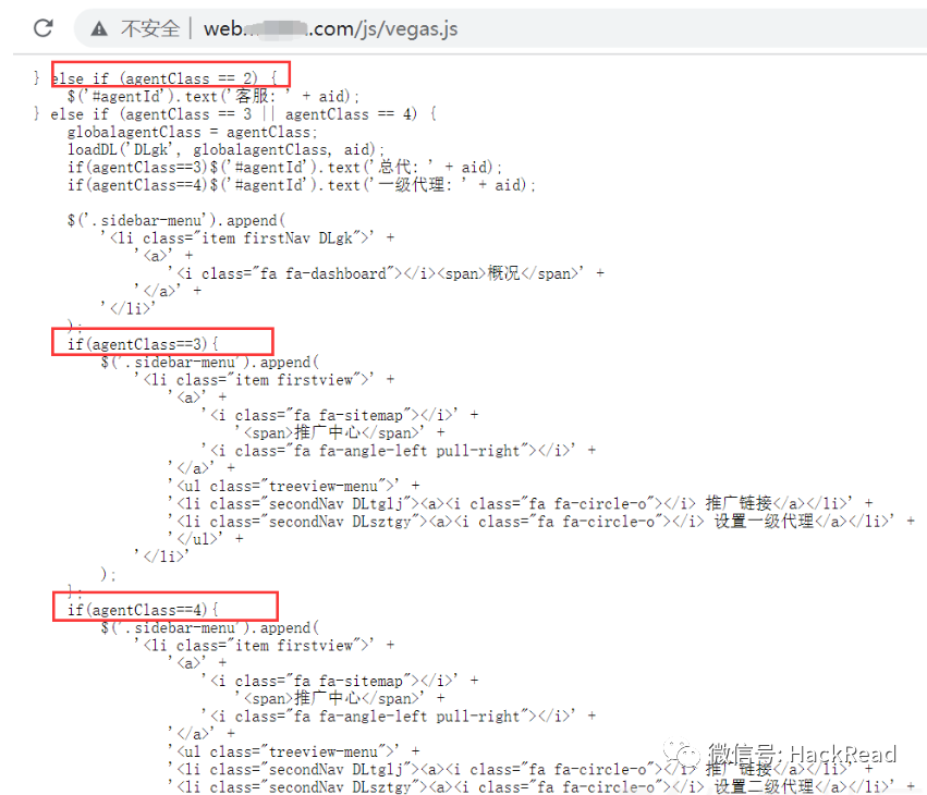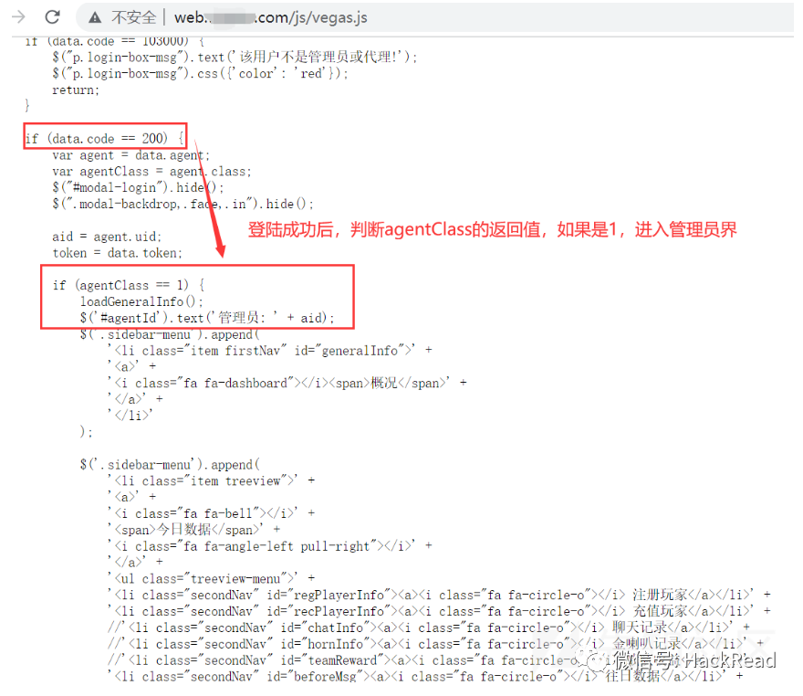 但是继续阅读js代码,发现存在如下的代码:登陆成功后data.code == 200,再根据返回包的agentClass值,可以控制显示的是管理员界面还是客服界面还是一级、二级用户界面。由于是前端判断且通过document.write函数渲染界面,因此可以前端绕过,直接修改返回包中的agentClass值为管理员的值,就可以进入到管理员界面,且后端所有接口也都如上面一样不存在鉴权,因此管理员的后台所有功能都可以使用