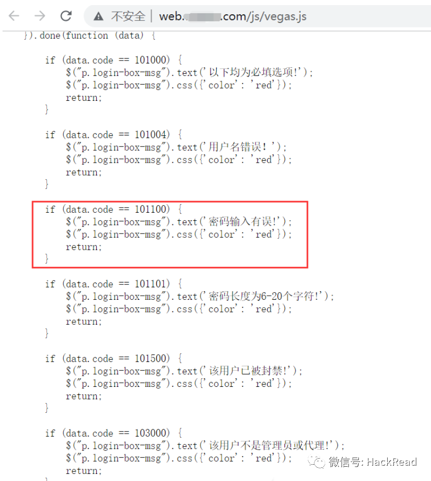 根据js代码里的if逻辑可以很清楚的看到:返回包code值为101100是密码错误,200就是登陆成功,