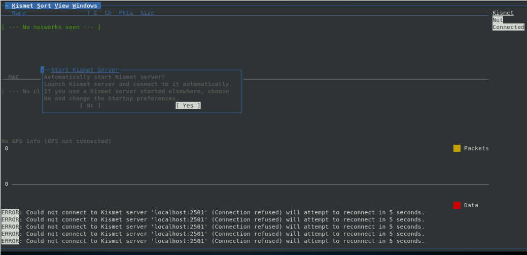 Kismet是最流行的工具之一。Kismet是一款开源解决方案,可以充当面向802.11无线局域网的网络检测器、数据包嗅探器和入侵检测系统。任何支持原始监控模式并能够嗅探802.11a、802.11b、802.11g和802.11n流量的无线卡都将与Kismet兼容。Linux、FreeBSD、NetBSD、 OpenBSD和Mac OS X都得到该程序的支持。客户软件也可以在Windows上运行。