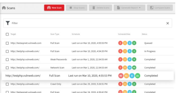 Acunetix是道德黑客用来阻止恶意攻击者未经授权获得访问权的一种自动化工具。作为一种安全扫描器,它可以扫描JavaScript、HTML5和单页面应用程序。它可以保护Web应用程序免受几个网络缺陷的影响。