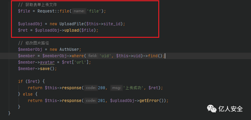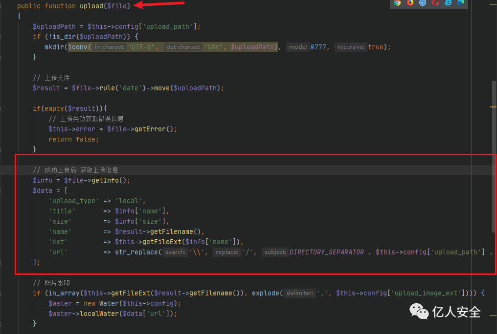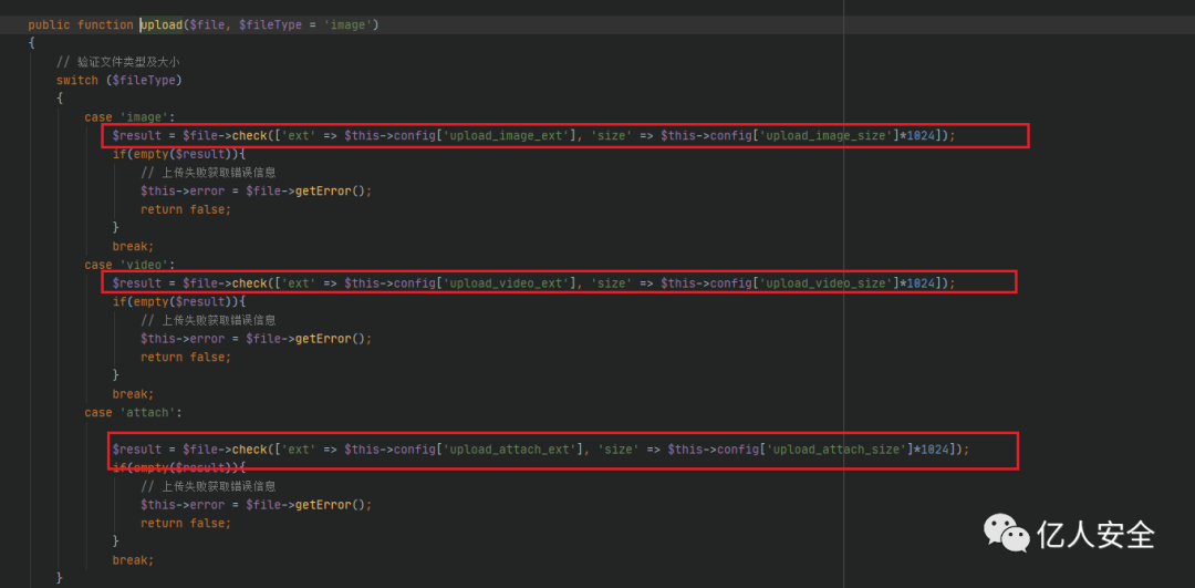 发现这个CMS在处理文件上传的时候,基本都是这三行代码进行控制: