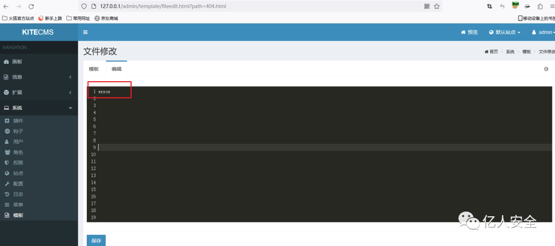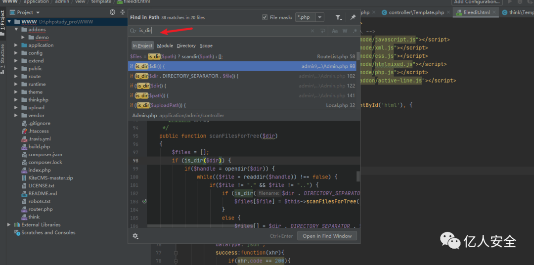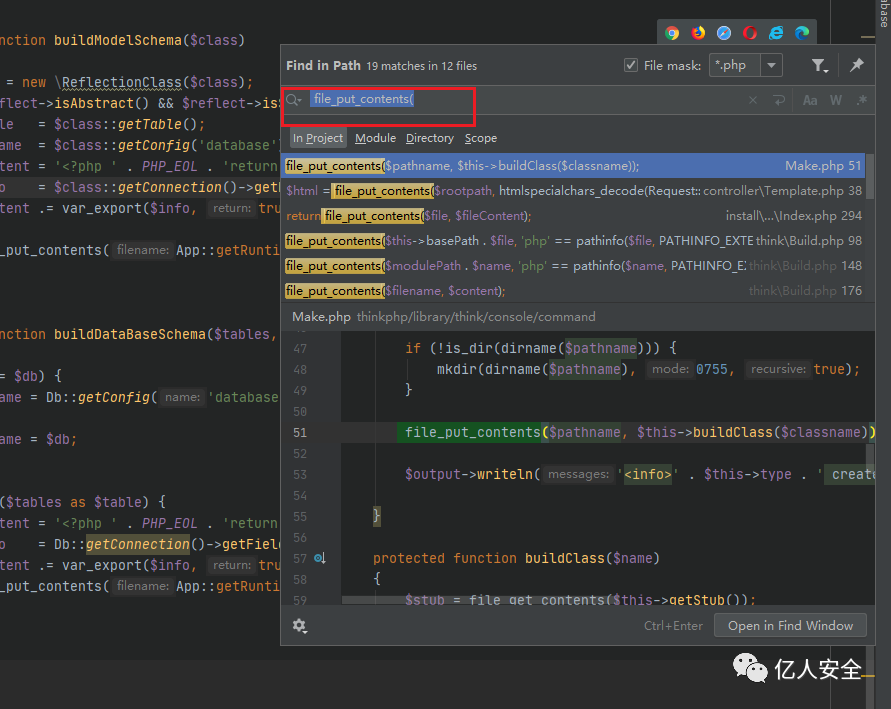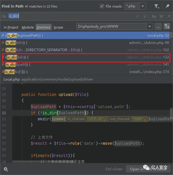 全局搜索 file_put_contents() 函数,发现路径是admin模块下的也就是后