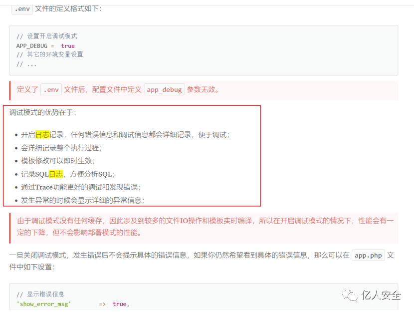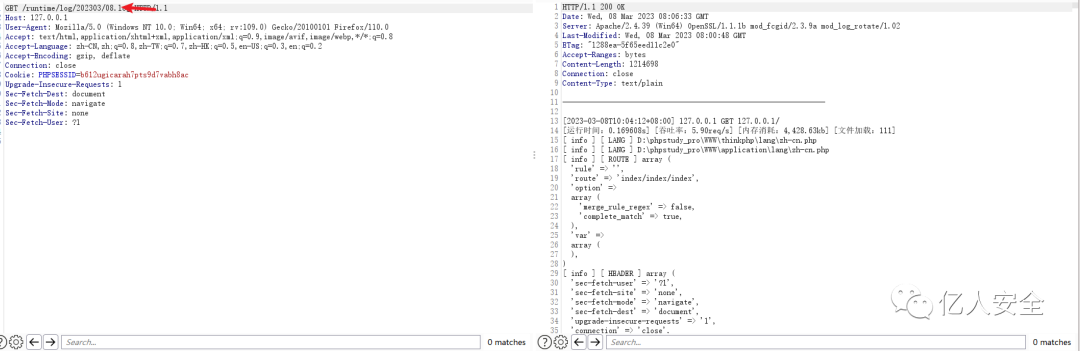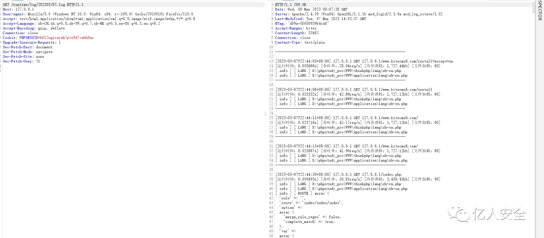当日志写入开启且 app_debug 调试模式开启时,我们的操作、SQL执行语句、流量等信息都会被记录在日志文件中。所以在当上述条件满足时就会通过日志文件造成信息泄露。