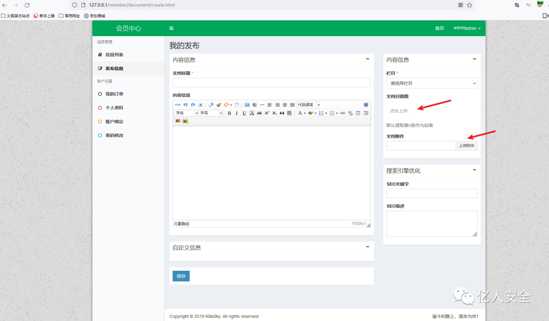 进入会员中心,然后进行发布信息,发现有2处上传点。