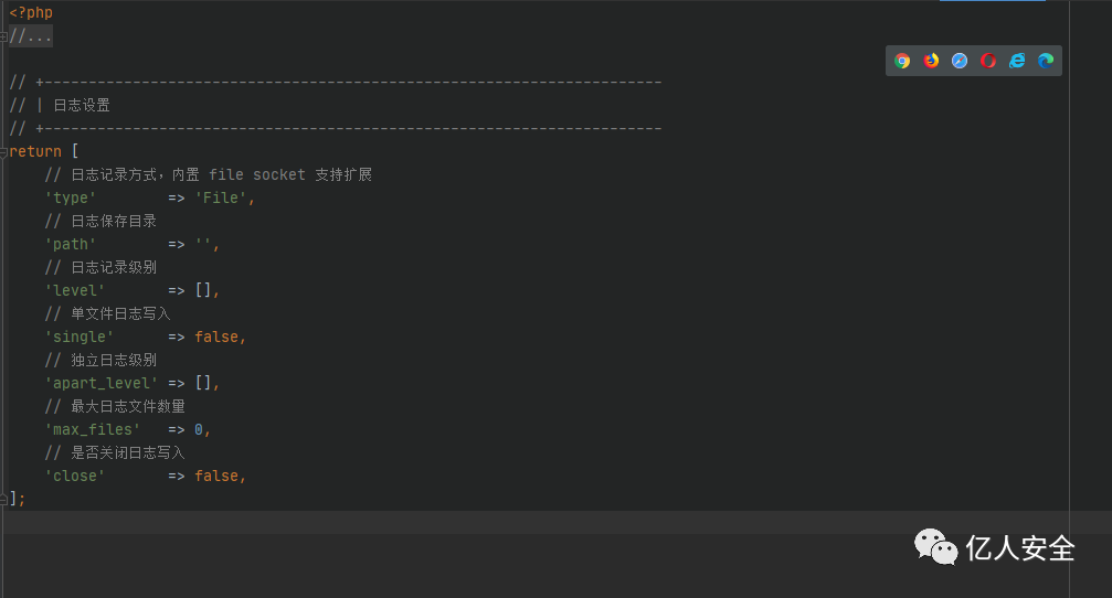 查看Thinkphp日志配置文件(/config/log.php),发现默认开启了日志记录
