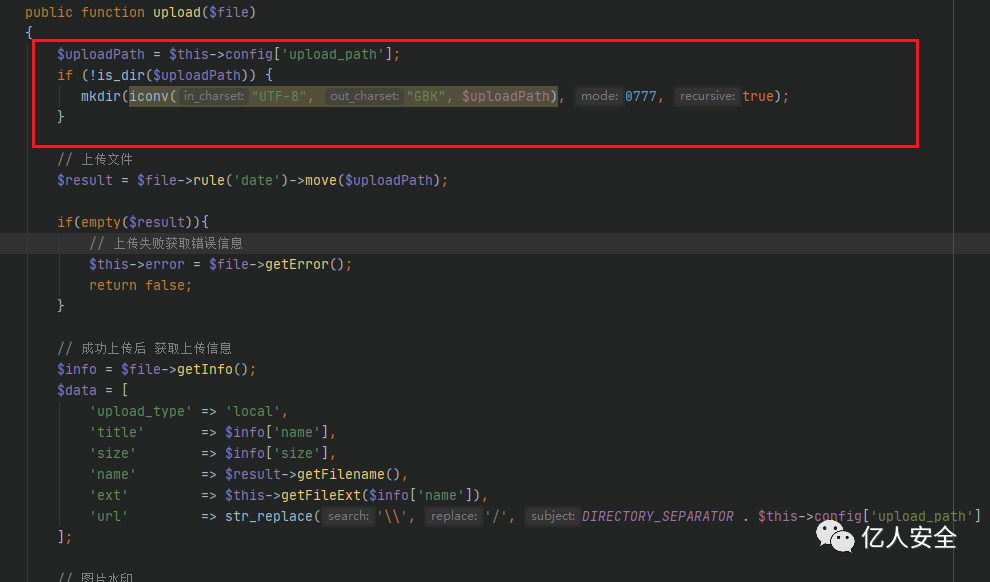 因此跟进一下app\common\model\upload\driver\local的upload方法,位于application/common/model/upload/driver/Local.php: