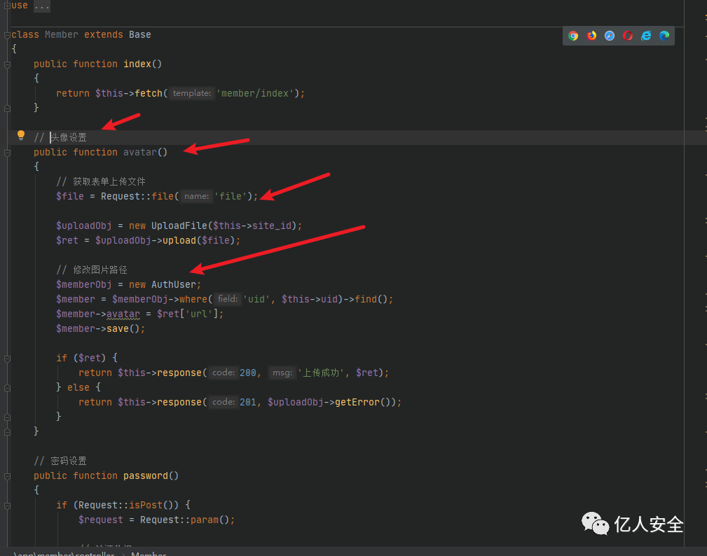 进入application/member/controller/Upload.php,发现前台注册个用户后也有个文件上传的功能,然后对其代码进行分析。