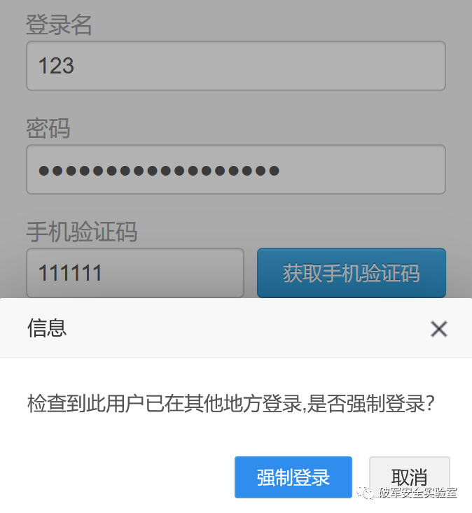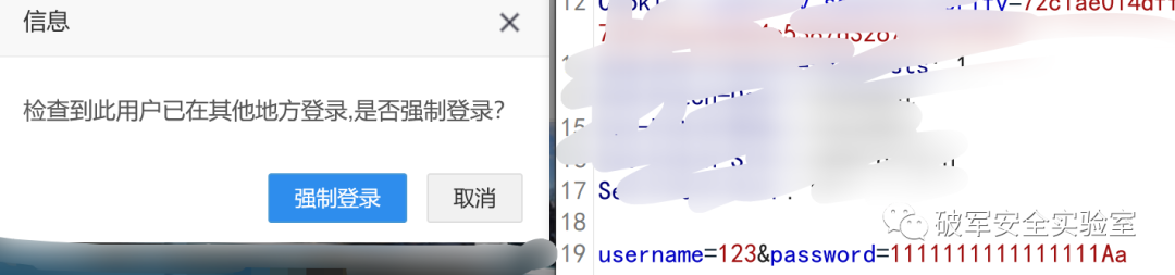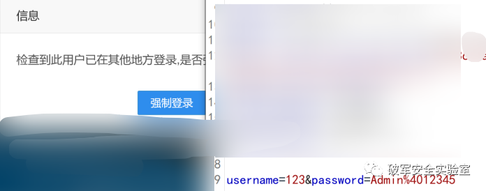 然而现实是残酷的,点击强制登录,会发现再次校验了用户名和密码,然而拦截对应返回包不再是校验,而是html了,无法控制返回包。