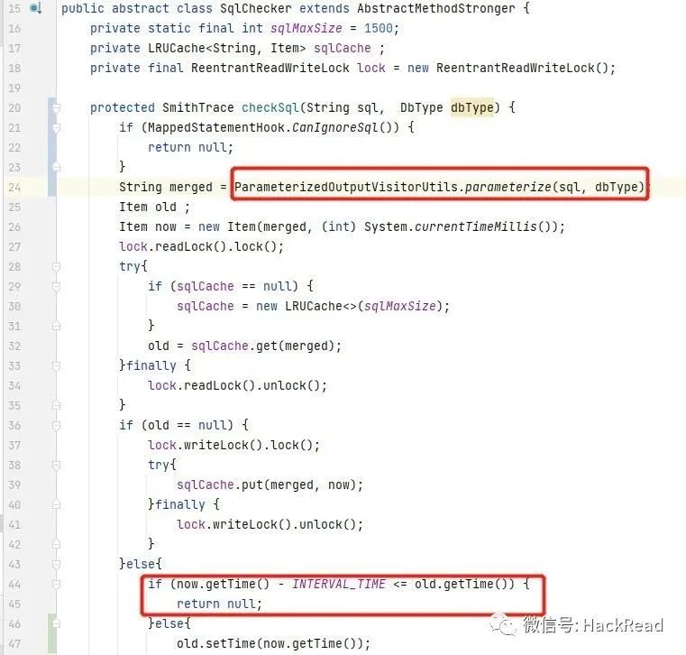 整个代码的实现逻辑很简单,获取参数化后的SQL语句,然后判断该merged sql是否在单位时间内出现过,如果出现过则不上报云端: