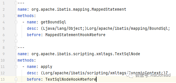 Hook点如下,其中StaticTextSqlNode#apply、TextSqlNode#apply方法的前后都使用同一函数逻辑处理。
