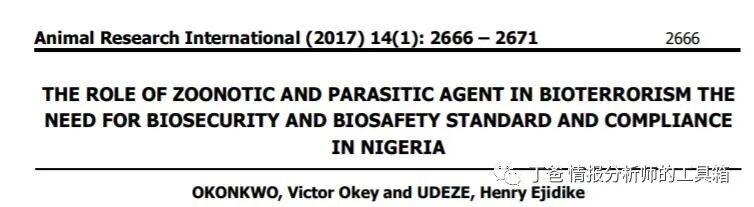 20、《人畜共患和寄生虫在生物恐怖主义中的作用,尼日利亚生物安全和生物安全标准和合规的必要性》