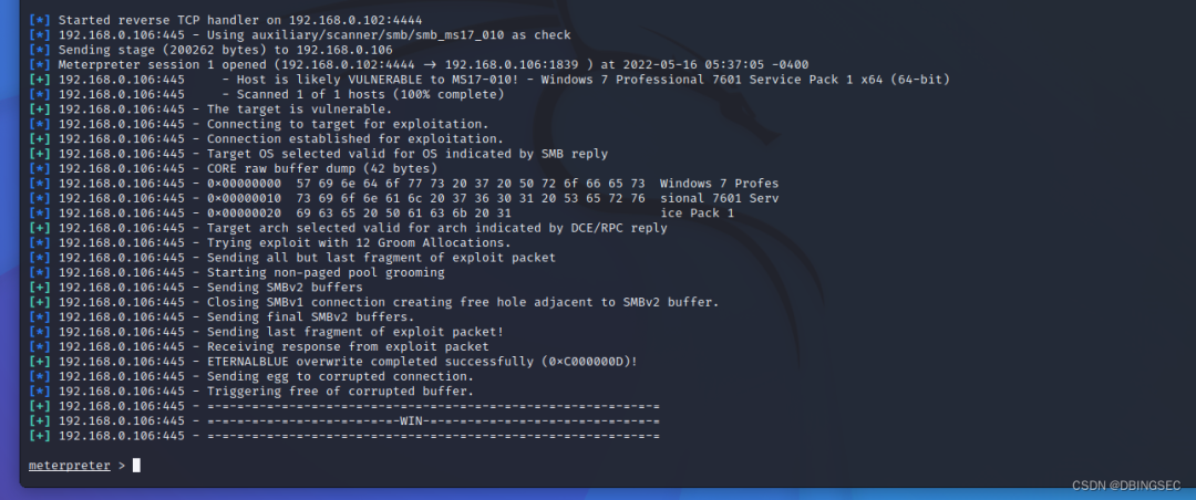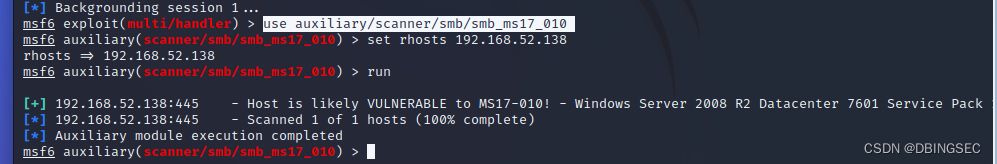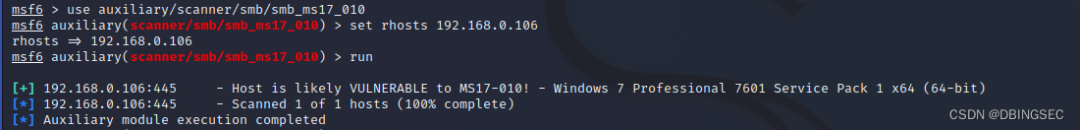 第二步:use auxiliary/scanner/smb/smb_ms17_010