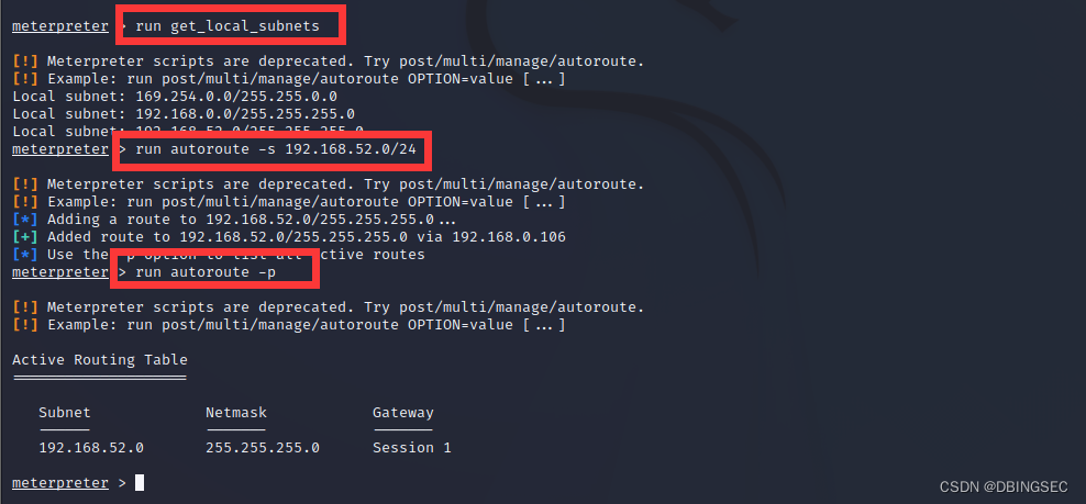 第二步:run autoroute -s 192.168.52.0/24 (添加路由)