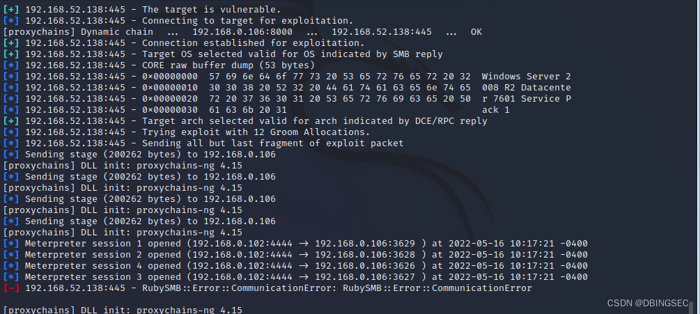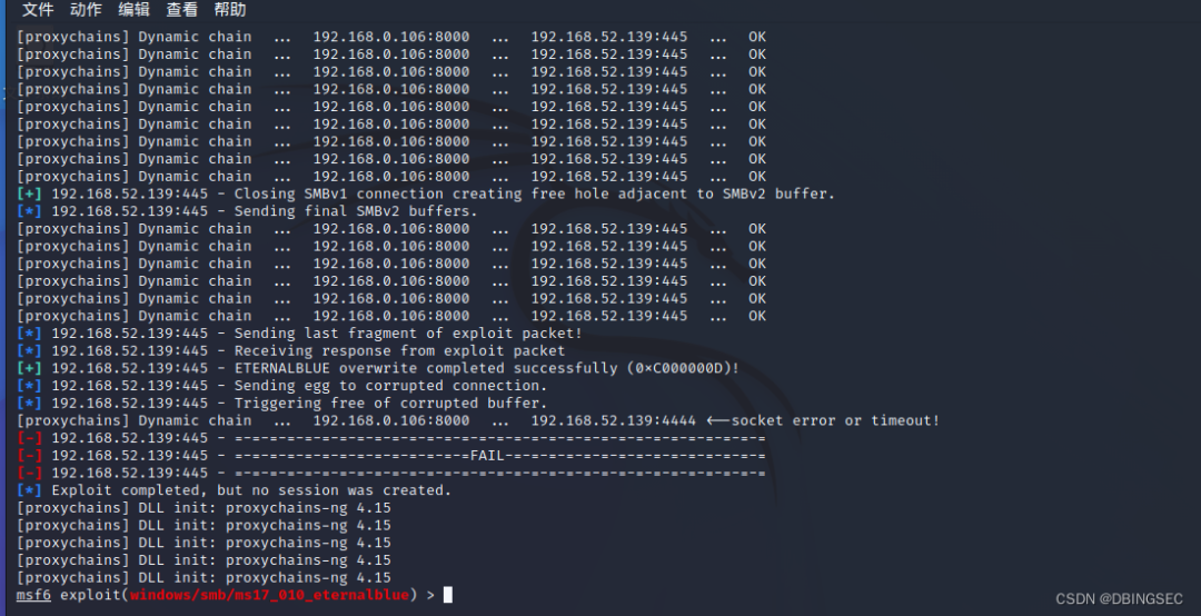 对主机192.168.52.139进行ms17-010漏洞利用同样也是具有其他的安全防护